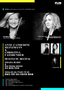 Connecting Music and the World 2026 FLIN FESTIVAL ProjectMasterclassDuo RecitalCompetition 2026.FEB.20~25 – Fassbender, Heinzmann Masterclass in Seoul, Korea2026.FEB.21~24 – 2026 1’st FLIN Festival Flute Competitioin 2’nd & Final Round2026.FEB.26 Seoul Art Center IBK Chamberhall -Fassbender & Heinzmann Duo Flute Recital 2026 Next Project / 다음 프로젝트 2026 FLIN Festival Flute Competition FLIN RECITAL PROJECT 2024 FLIN 2’d Project Methiu Dufour Flute Recital in Daegu Watch more Veideos Masterclass Next Masterclass 다음 마스터클래스 신청 2026 FLIN Festival& Flute Competition 2026 FLIN FESTIVAL FLUTE COMPetition 2026 FLIN 페스티벌플루트 콩쿠르 신청 Concert A special project where you can enjoy recitals by world-class musicians. 세계적 음악가들의 독주회를 만날 수 있는 특별한 프로젝트입니다. Masterclass Collaborate with world-class musicians to enhance your skills and artistic growth. 세계 정상급 음악가와 직접 소통하며 기악 실력과 음악적 성장을 함께 이루어 보세요. Competition "Compete alongside fellow musicians in competitions judged by world-class artists and grow together. 세계적인 음악가가 심사하는 콩쿠르에서 실력을 겨루며 주변 음악가들과 함께 성장해 보세요. FLIN Crew Member Introducing the crew members who support the FLIN-Flute Information Project. SangYeol Ryu류상열Director Instagram SeongHyeon Kim김성현General Manager Instagram SagnJin Ryu류상진Artist Manager Instagram